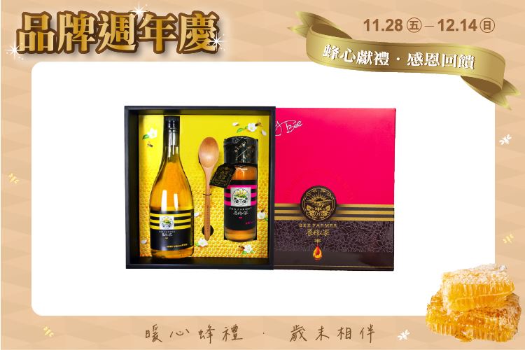 禮盒內容物:優選Taiwan特產蜂蜜425gx1瓶+純釀蜂蜜醋系列600mlx1瓶+原木湯匙x1支