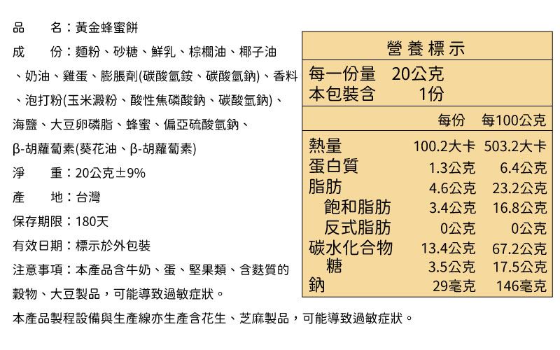▲ 效期說明 : 以消費者收受日起算,至少距有效日期前30天以上;蜂蜜蛋糕距有效日期前7天以上,消費者收受商品之有效日期若短於上述期間,本公司將於接獲通知後協助辦理退換貨。