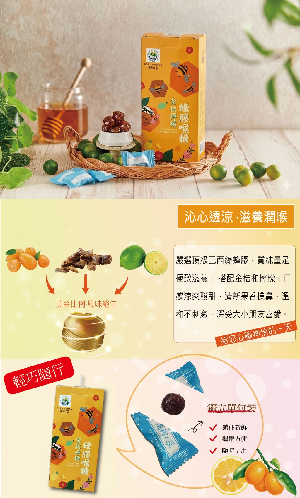 嚴選巴西綠蜂膠,質純量足極致滋養,搭配金桔和檸檬,口感涼爽酸甜,清新果香撲鼻,給您心曠神怡的一天!