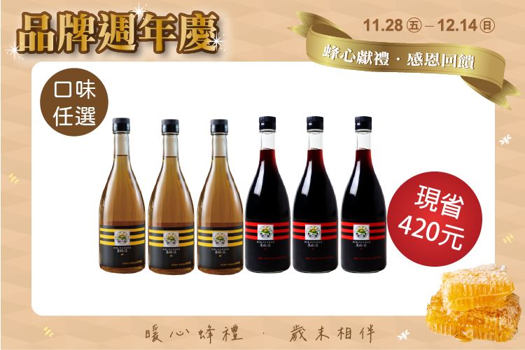 2.本產品使用蜂蜜及天然果汁製造,色澤變化屬自然現象;久置若有沉澱與褐變係釀造物形成之自然現象,請安心飲用並置於陰涼處保存